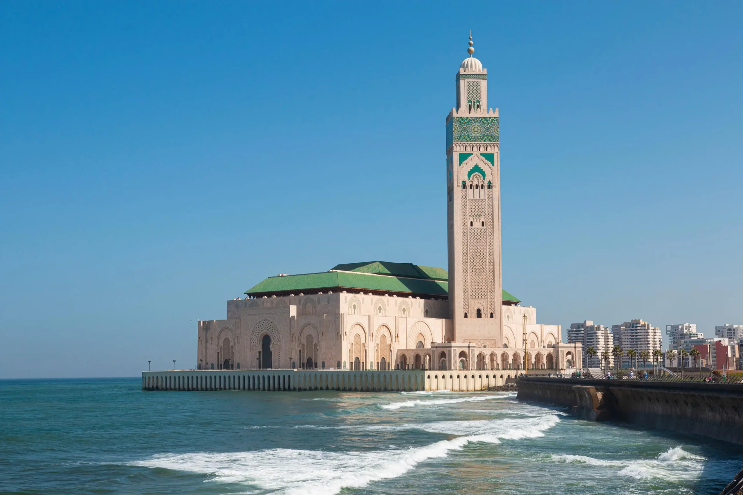 En route to Oualidia, stop in Casablanca to admire the monumental Hassan II Mosque. Continue to La Sultana Oualidia, perched on a tranquil lagoon, where seafood feasts and golden sunsets await.