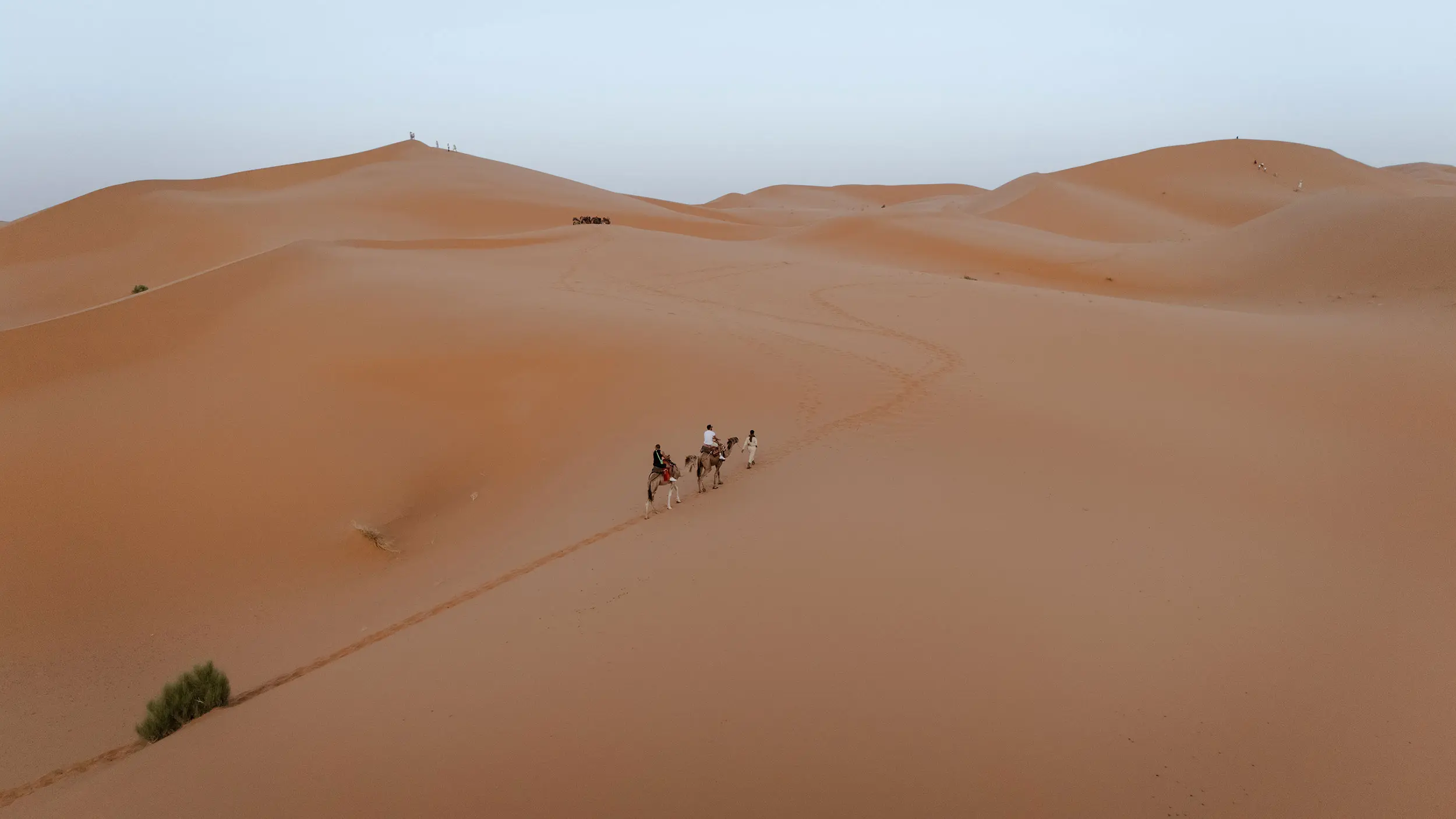 Journey through cedar forests, mountain passes, and palm-lined valleys before crossing into the Sahara Desert. Overnight at The White Camel.