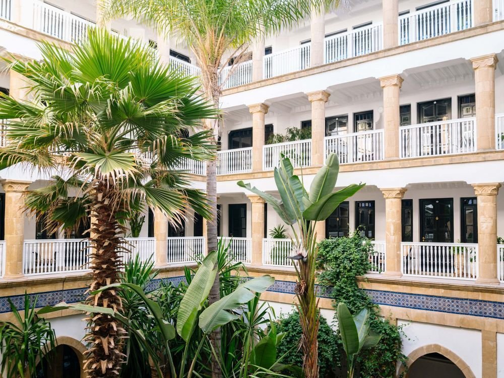 En route to Essaouira, stop for a Moroccan wine tasting. Arrive in the coastal medina and settle into L’Heure Bleue, a refined riad blending elegance with history.